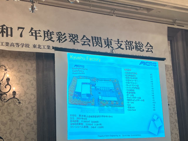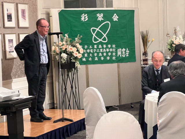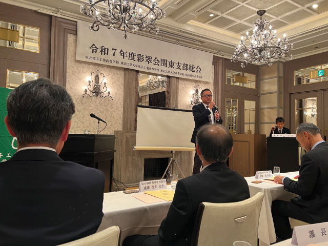 総会では、関東支部副会長新設に関する議題が提案されました。協議の結果、7期生の水戸部和幸様が関東支部の副会長に就任しました。その後、記念講演も行われ、26期生で現在ミクロ技研株式会社代表取締役社長の冨澤肇様による高校時代の思い出や出会い、現在社長を務めているミクロ技研株式会社の紹介や取り組みなど貴重なお話をいただきました。